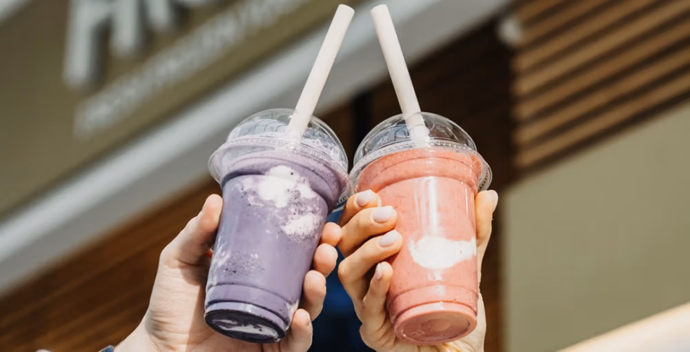 Matcha vanilla coconut latte & Matcha vanilla coconut frappé