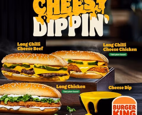 Dipni to, jak chceš! Nový Cheesy Dippin’ je tady – longy, burgery, nugetky i hranolky chutnají ještě líp s horkým sýrovým dipem. Tak se připrav na pořádnou cheesy jízdu!