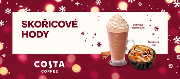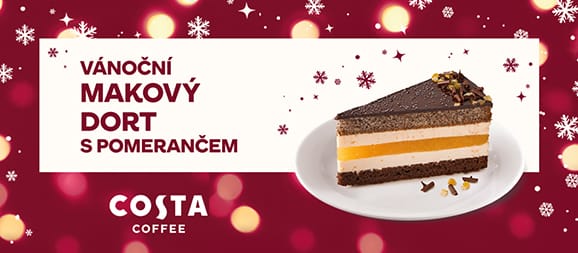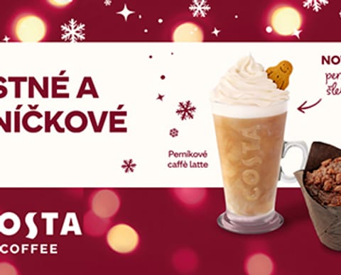 Náš perníkový muffin s kousky hrušek a povidly je malý dezert, který v sobě spojuje to nejlepší z české zimní klasiky – sladkost hrušek, jemně pikantní chuť perníkového koření a nostalgickou povidlovou náplň. Navrch drobenka s karamelovým nádechem, která při pečení vytvoří zlatavou křupavou krustu. Tenhle muffin je dokonalý parťák pro naše Perníkové caffè latte – spolu tvoří dvojici, která voní Vánocemi, teplem a pohodou. Perníkové caffè latte Perníčky patří k českým Vánocům stejně jako stromeček nebo koledy, a právě jejich vůni a chuť jsme přenesli i do šálku – v podobě Perníkového caffè latte, které se každoročně stává nejžádanějším nápojem adventu. Naši baristé ho s láskou připravují od brzkého rána až do zavíračky. Jeho základem je poctivé espresso z čerstvě umleté směsi Mocha Italia, jemně našlehané mléko a sirup s výraznou chutí perníku. Novinka! Vánoční šlehačka Letos pro vás máme novinku – perníkovou šlehačku v ceně nápoje! Ta dodá Perníkovému caffè latte ještě větší kouzlo. Takto připravený nápoj, lahodně mléčný a chuťově bohatý, vás nejen nakopne, osladí váš den, ale také potěší na pohled. Nesmí v něm totiž chybět pan Perníček, věrný společník každého perníkového „latéčka“, malý symbol Vánoc v Costa Coffee.