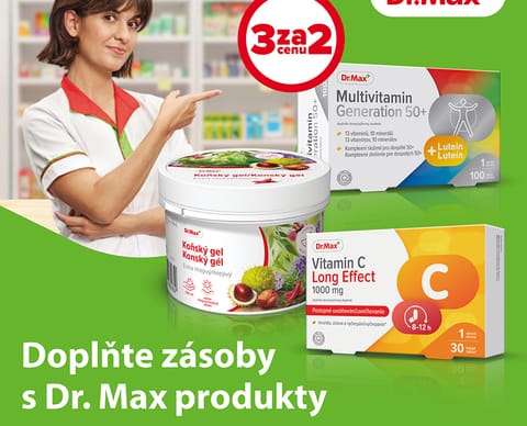 Při nákupu libovolných přípravků značky Dr. Max získá člen klienstkého programu Karta výhod Dr. Max nejlevnější z nich za 0,01Kč. Nabídka se nevztahuje na léčivé přípravky, produkty Bebelo a Skinexpert.