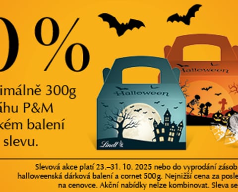 Při koupi minimálně 300g pralinek na váhu P&M v halloweenském balení.