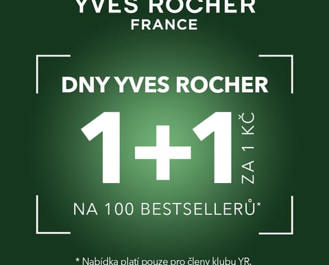 Využijte nabídku 1+1 za 1 Kč na 100 bestsellerů od rostlinné kosmetiky Yves Rocher! K nákupu jednoho z vybraných produktů získáte druhý ve stejné, nebo nižší hodnotě za 1 Kč. Nabídka platí pro stávající i nové členy klubu Yves Rocher. Pokud ještě členy nejste, můžete se jednoduše registrovat v naší prodejně a okamžitě začít čerpat klubové výhody.
