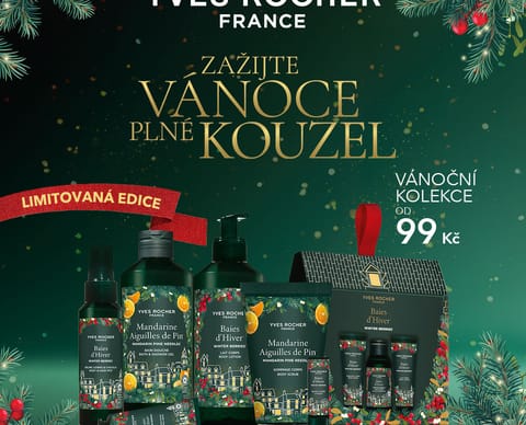 Přijďte do prodejny rostlinné kosmetiky Yves Rocher a zažijte Vánoce plné kouzel! Objevte letošní limitovanou vánoční kolekci produktů již od 99 Kč a načerpejte inspiraci na voňavé dárky pro sebe i své blízké.
